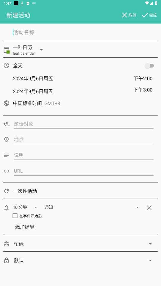 添加主题,邀请对象,地点等等信息,点击完成,创建新的待办事项