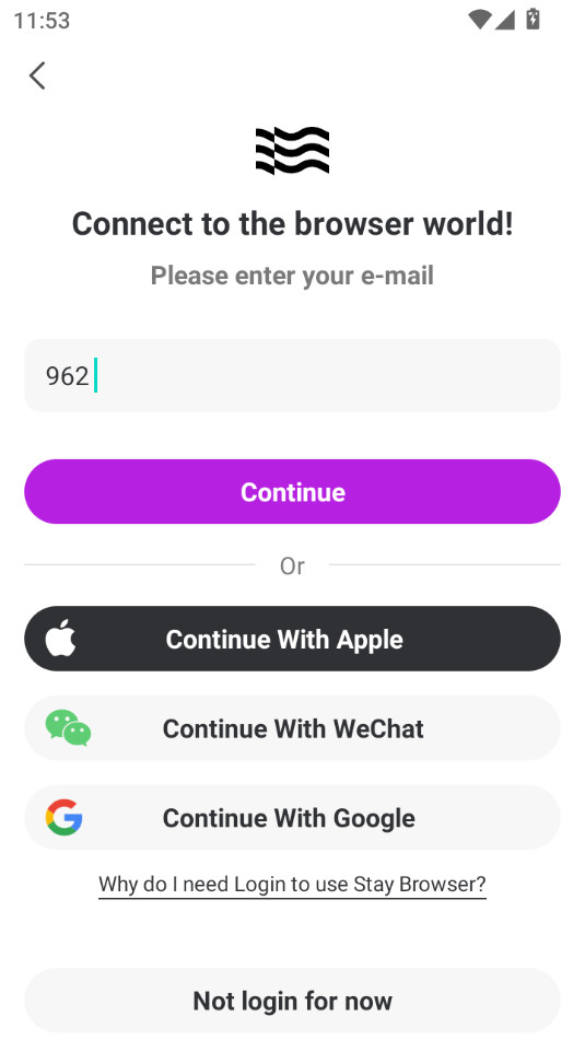 下载安装并打开stay浏览器app,点击右上角sign in