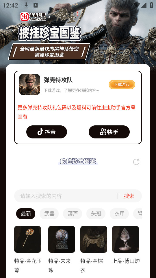 在本页面内下载安装虫虫助手黑神话悟空披挂珍宝图鉴app
