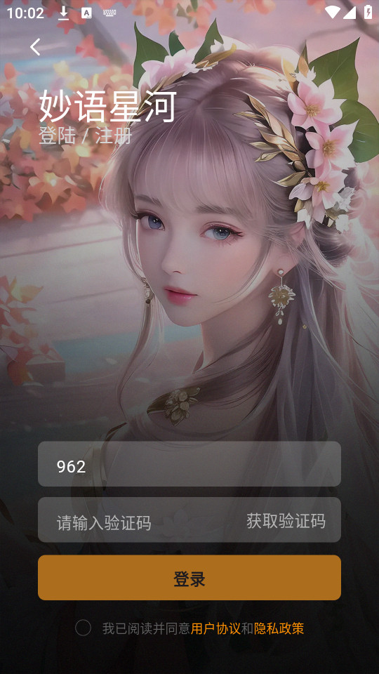 1.下载安装并打开妙语星河app,点击【同意并继续】