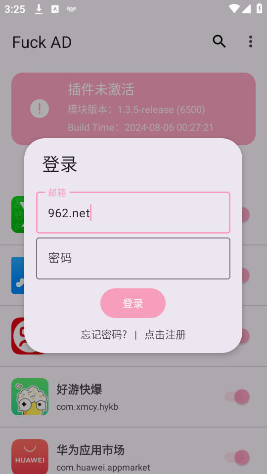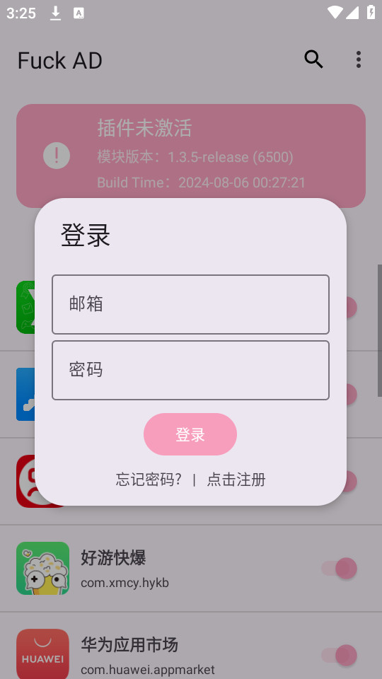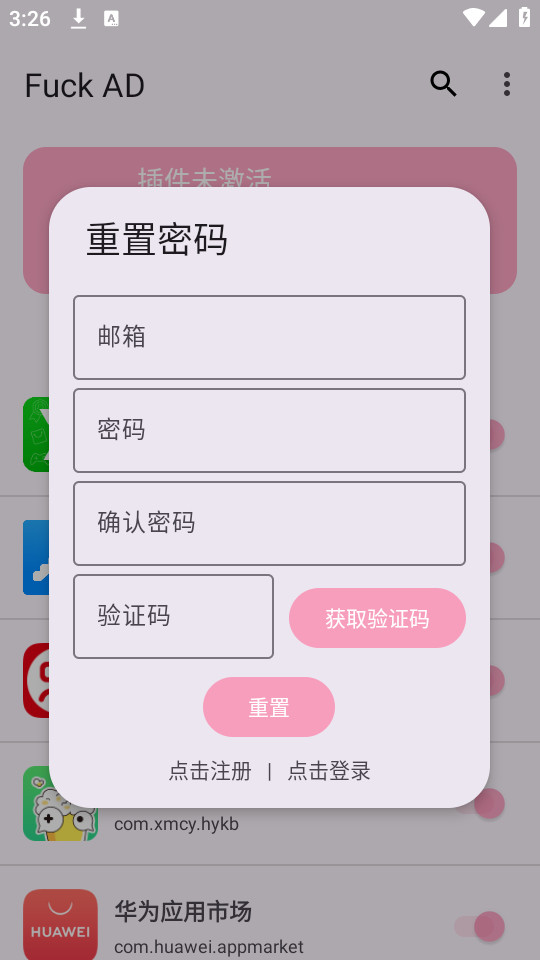 1.下载安装并打开Fuck AD,点击【点击注册】