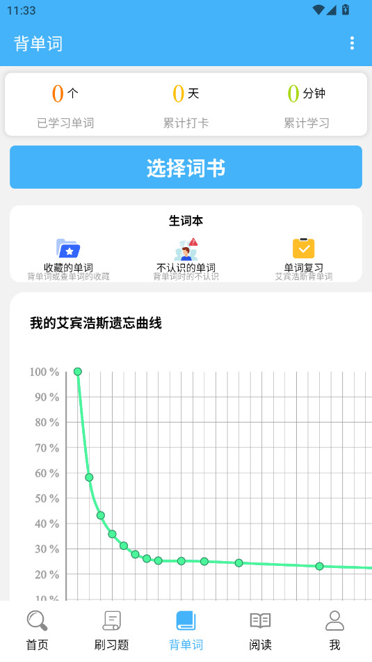 首先你需要在背单词界面设置好学习的内容然后开始学习