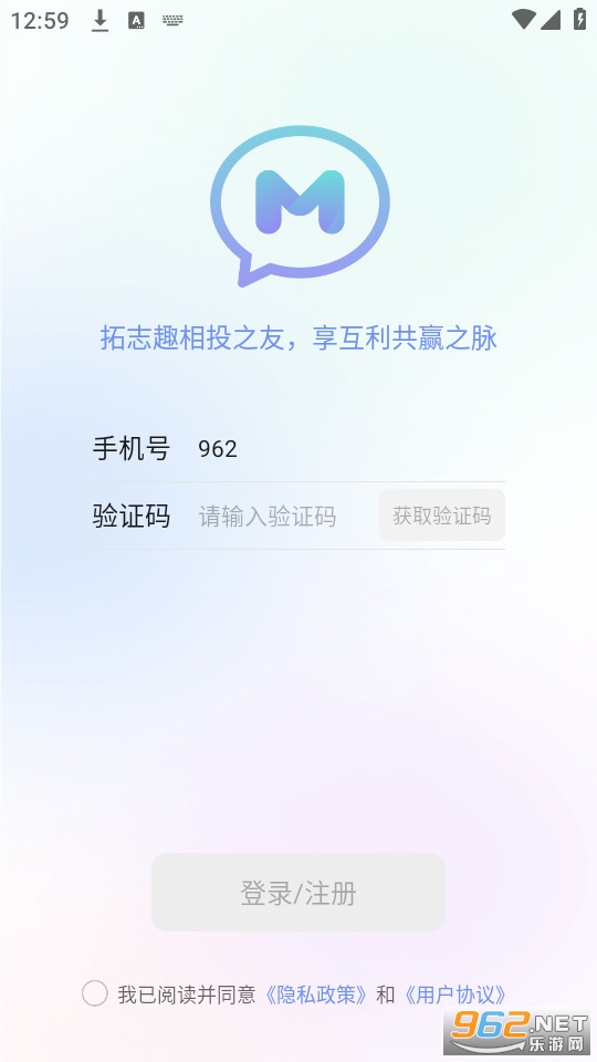 2.打开享脉app,输入手机号等待获取验证码,填写验证码,直接点击登录/注册就可以了