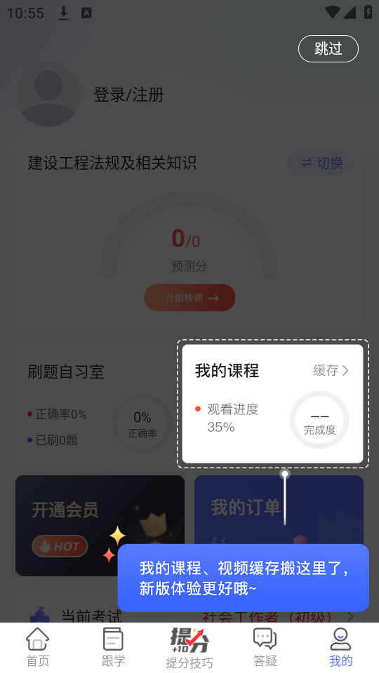6.点击右上角的【跳过】进入考试首页