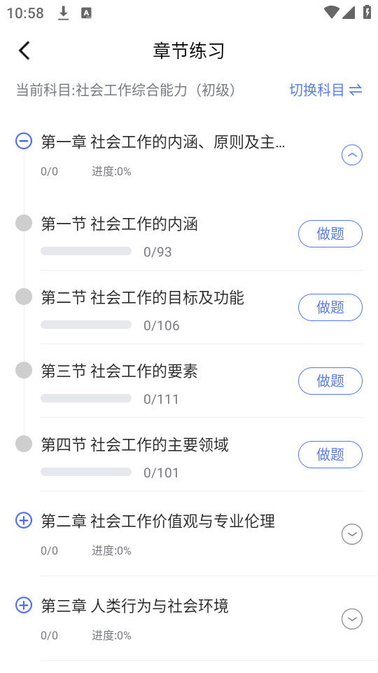 9.点击【做题】就能够进行做题学习了,右上角也能够切换科目