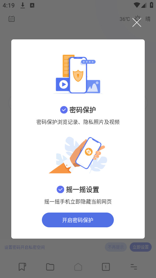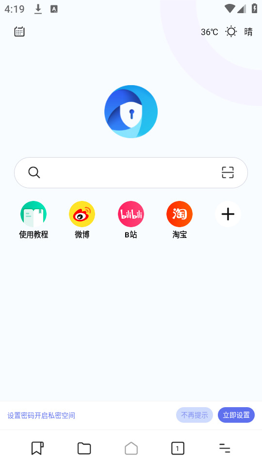 3.设置好密码就会自动跳转到暗盒浏览器首页