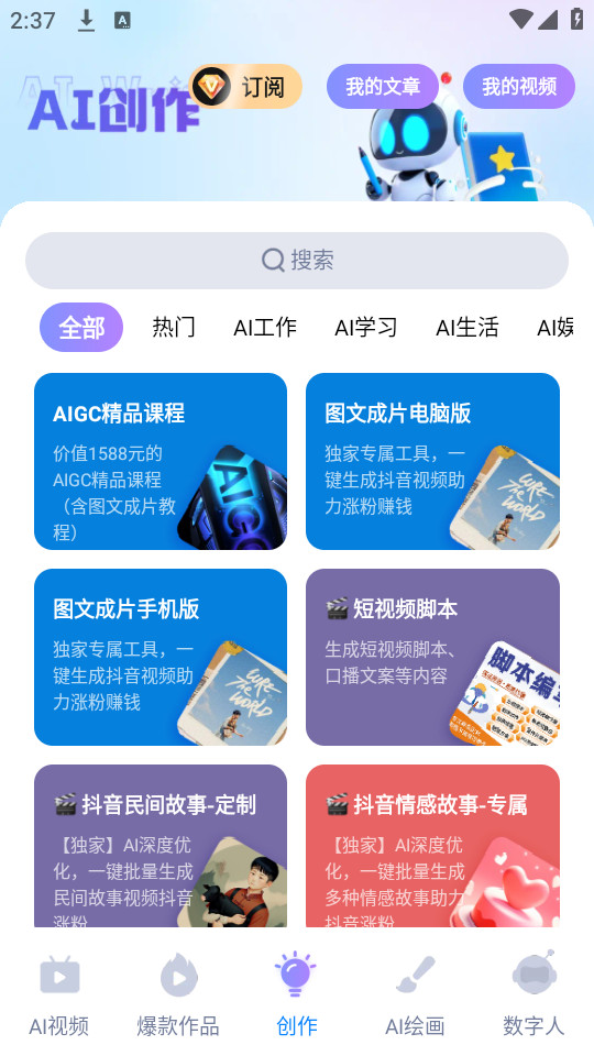 神奇大片app,一款利用ai技术进行生成创作的工具,涵盖的板块非常的多,无论是ai绘画、创作还是交流都是可以的,可以进行文案计划生成,还可以和ai虚拟人物进行聊天对话,诉说心事,满足不日常生活和工作的需求。