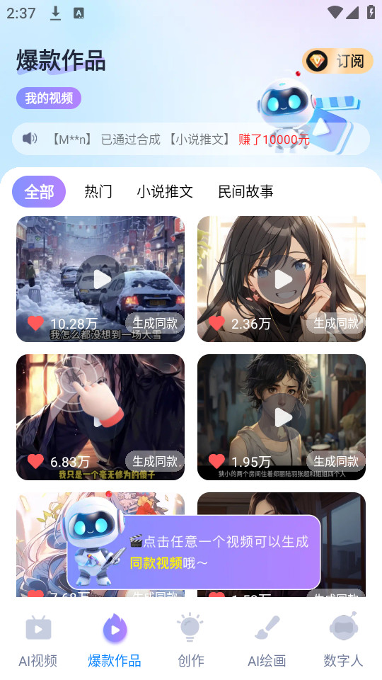 5.进入神奇大片app首页之后,直接根据你的需求来点击制作各种视频,比如小编点击【民间故事-专属】