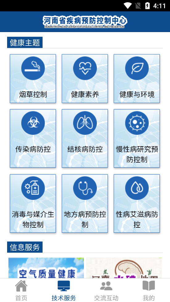 朋友们可以在河南疾控app中去了解河南省的各种疾控预防情况,可以了解河南省疾病预防控制中心的各种信息,有着技术服务和交流互动等多个栏目,有需要的朋友可以下载试试。