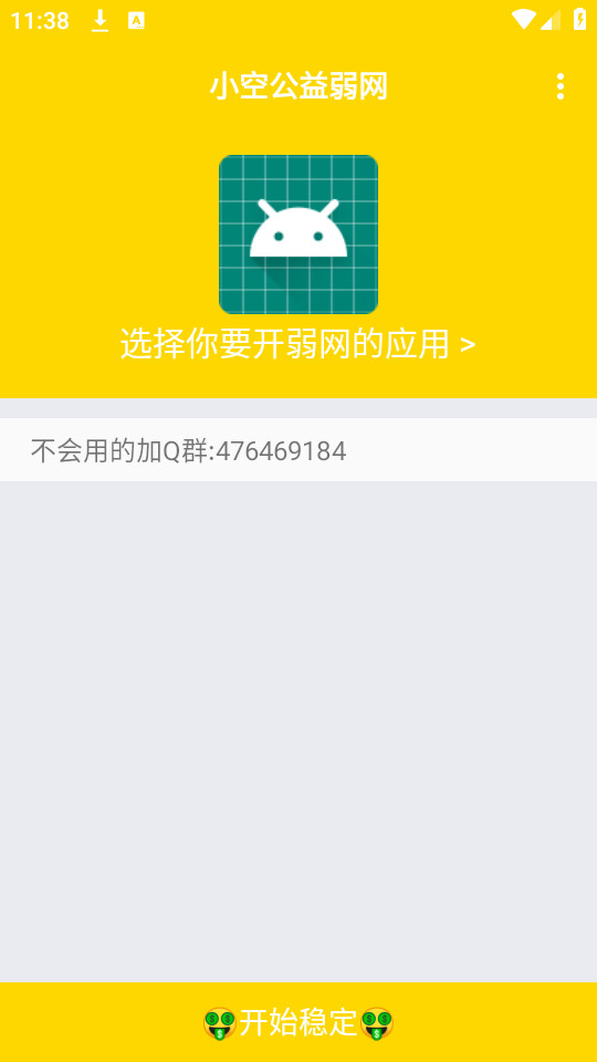 1.下载安装并打开小空公益弱网app,点击【选择你要开弱网的应用】