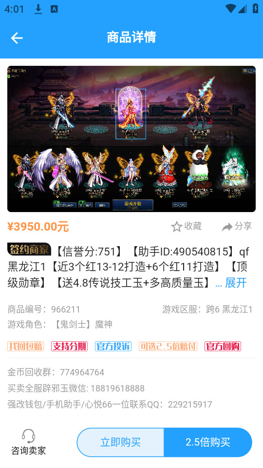 2、详细的账号展示一目了然,让买家是可以去详细了解账号的信息。