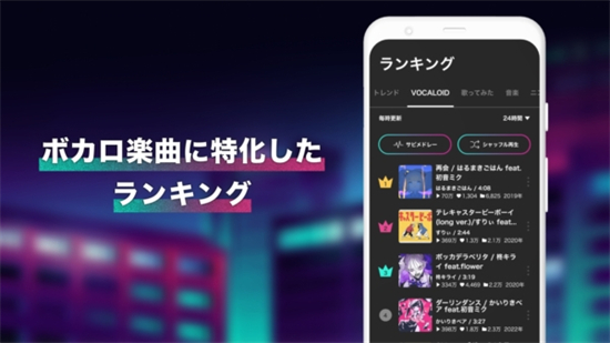《vocacolle》是一款功能强大的音乐播放软件,专为喜欢VOCALOID系列音乐的用户打造。允许用户在使用其他应用程序或浏览网络时继续播放音频,实现多任务操作的音乐享受。用户可以通过Vocacolle查找喜欢的视频,并创建自己的无限播放列表,根据个人喜好和需求随时随地收集和播放音乐。提供了舒适的VOCALOID系列音乐享受,支持背景播放和合唱混合曲的播放功能,同时无需注册会员即可使用。