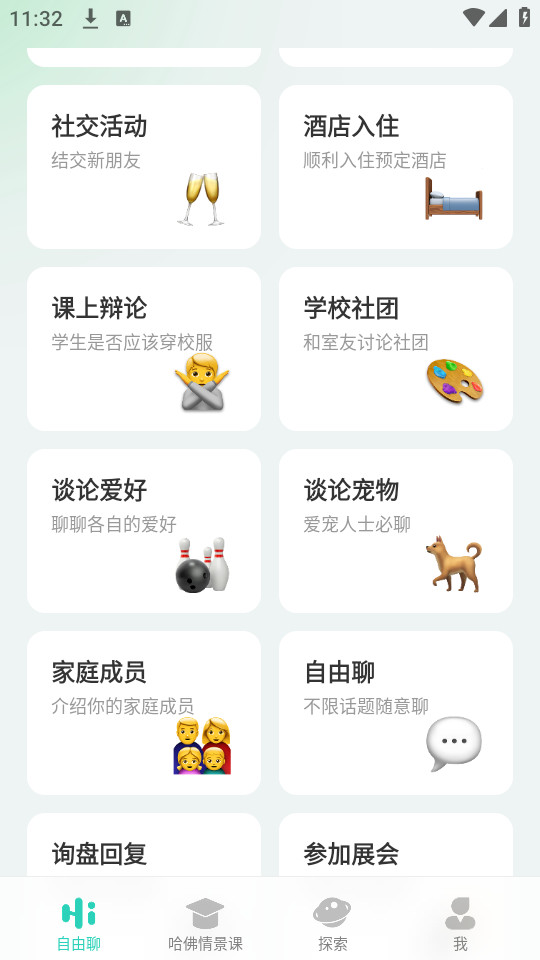 全面覆盖生活、考试和工作场景,提供海量话题和丰富场景,让你的英语面面俱到。你可以选择饭店、机场、超市、酒店等多个场景来进行沉浸式练习,感受真实情景的语言交流。
