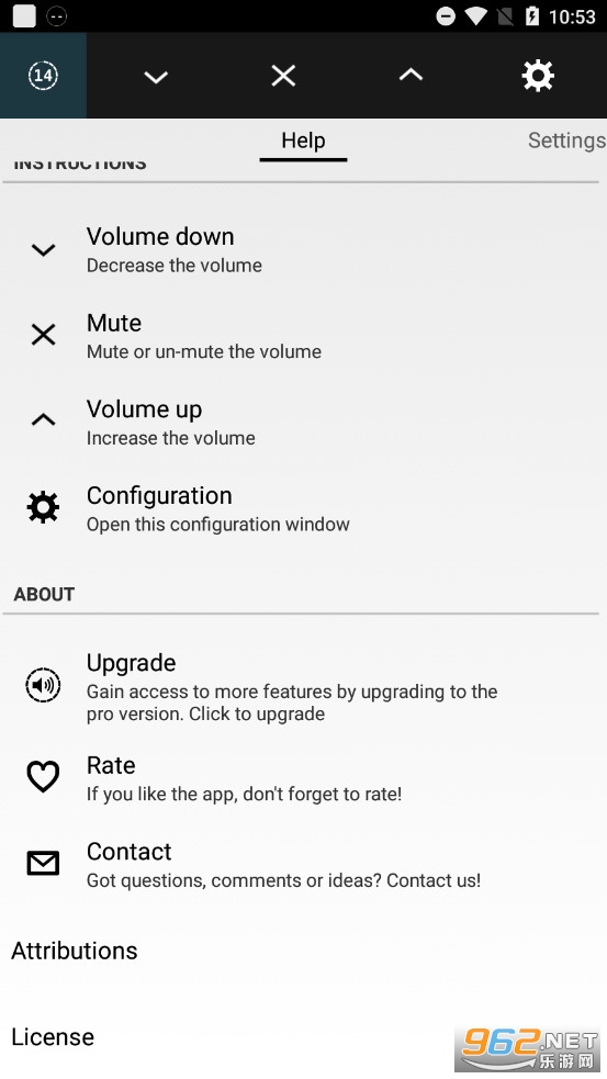 该应用程序通过通知提供对音量控制的快速访问。该应用程序旨在取代平板电脑或手机上的硬件按钮,因为它们通常难以访问且容易损坏。