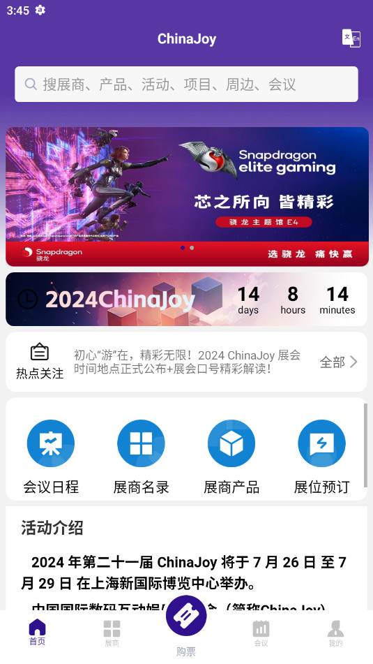 你可以准确发现心仪的展商,按展馆分类查看展商信息,甚至了解官网链接。应用程序还提供展商活动和产品的精彩内容。此外,你还可以在应用程序中浏览ChinaJoy展会的热门资讯,包括官方公告、展览新闻、论坛会议、产业新闻、精彩游戏、硬核硬件和动漫卡通等内容。你可以一键获取展会日程,并将其加入手机日历,以便合理安排时间,轻松愉快地参观展会。