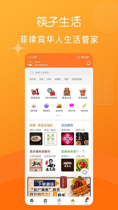 筷子生活app是生活服务类手机软件,筷子生活菲律宾外卖平台致力于为在非华人提供最便捷的生活服务和帮助,软件涉及多个方面,满足用户的各种生活需求,让你在外的生活更加的便捷,感兴趣的快来下载吧!