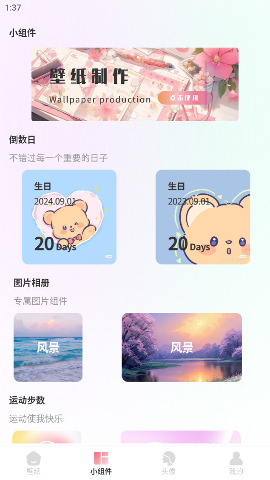 小工具整合:除了壁纸美化功能外,软件还整合了多种个性化的小工具,让你的手机使用更加便捷。