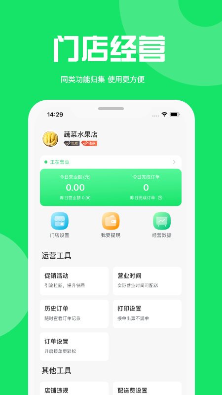 2、同类功能汇集,使用更加方便,让商家经营更有效率。