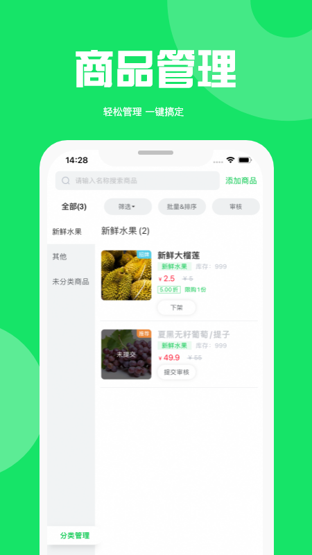 3、轻松管理,一键搞定,商品都是有详细的分类,管理更便捷。