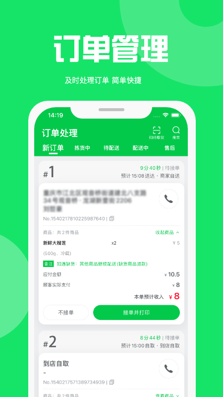 [手机接单]随时随地接单,跟踪订单配送状态,操作退单 ,省心省力。