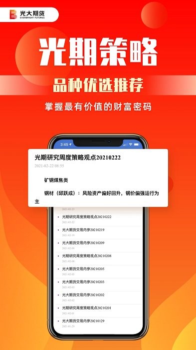 光大期货app官方版顾名思义是由光大期货有限公司官方出品的金融理财app,光大期货平台是官方期货开户交易软件,您安装在手机客户端上的一站式投资工具,致力于帮助和解决用户的真实需求和问题,集期货投资服务于一体,页面干净简洁,功能丰富全面,而且绿色安全可靠,欢迎体验!