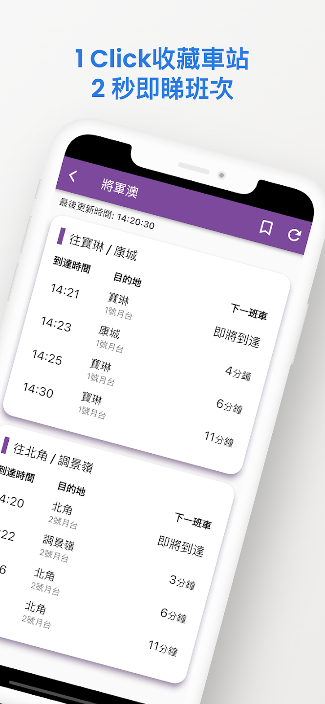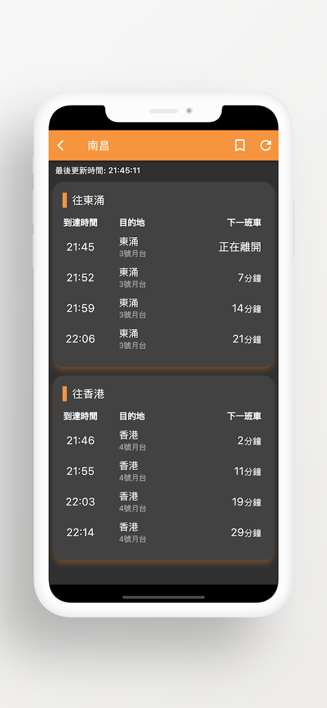 提供实时港铁、轻铁和港铁巴士路线班次到站时间,掌握行程每分每秒!