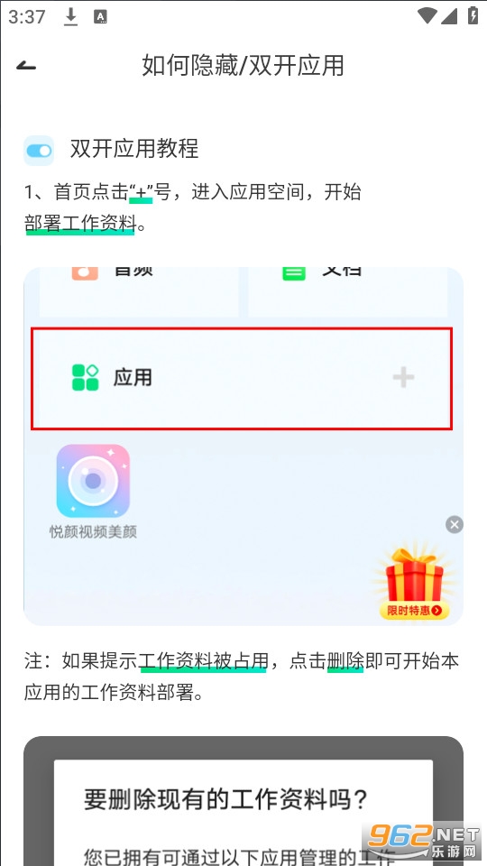 应用隐藏:将您的应用添加至隐藏空间内可以新生成个独立应用,可与桌面应用共同存在。