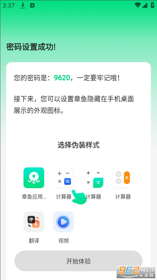 2.打开章鱼应用隐藏软件,完成密码设置之后选择伪装图标样式之后,进入章鱼应用隐藏软件主界面