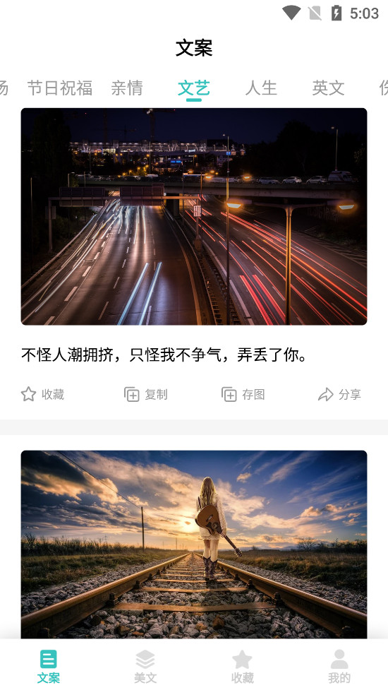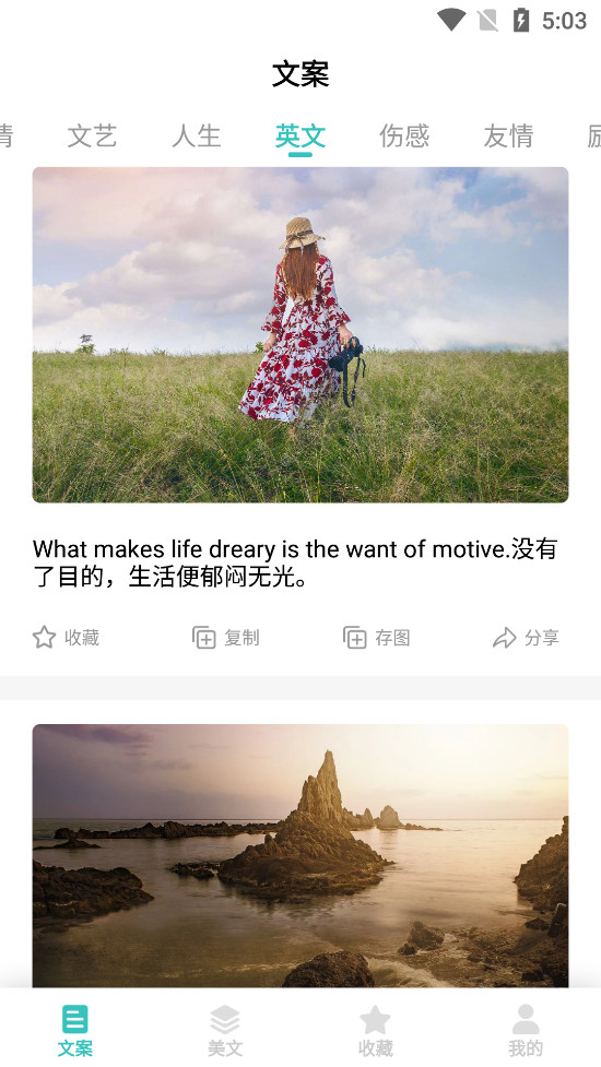 1、登录文案素材app,选择喜欢的文案发朋友圈;