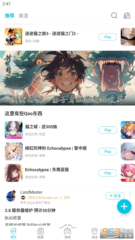 《QooApp》一款非常好用的手游平台,在这里有着全球最新的手游资讯,还有着活跃的游戏社区,你可以在这里分享你玩过的各种游戏,体验各种新游戏,软件的操作简单好用,快来下载试试吧!