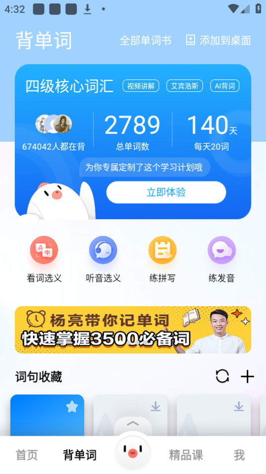 背单词:教、学、测、三位一体的背词模式,支持按同根词、考频、易错词、随机乱序等多种背词顺序,重点单词优先背。