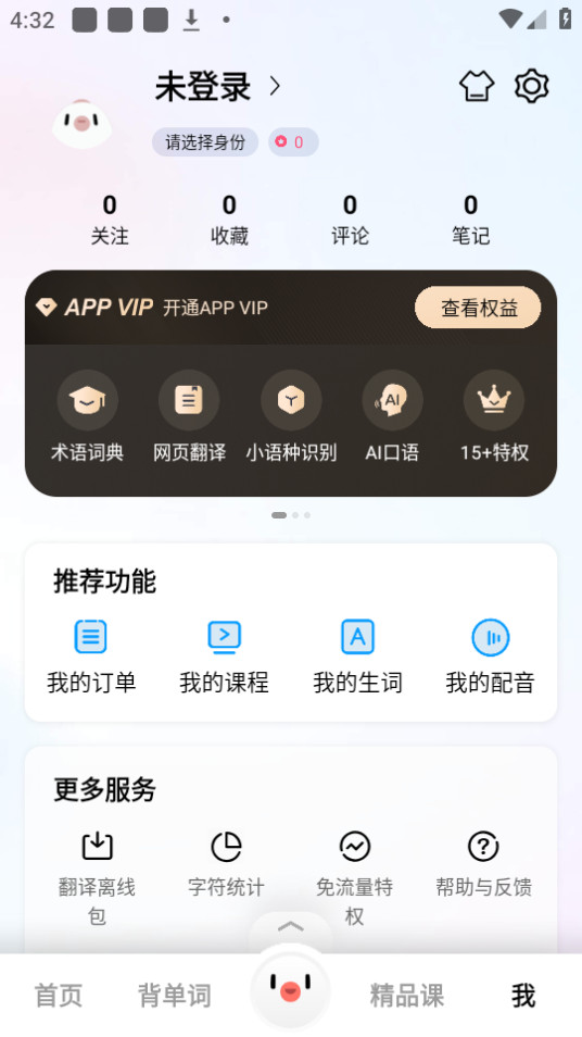 1.下载并打开百度翻译app,点击【我】