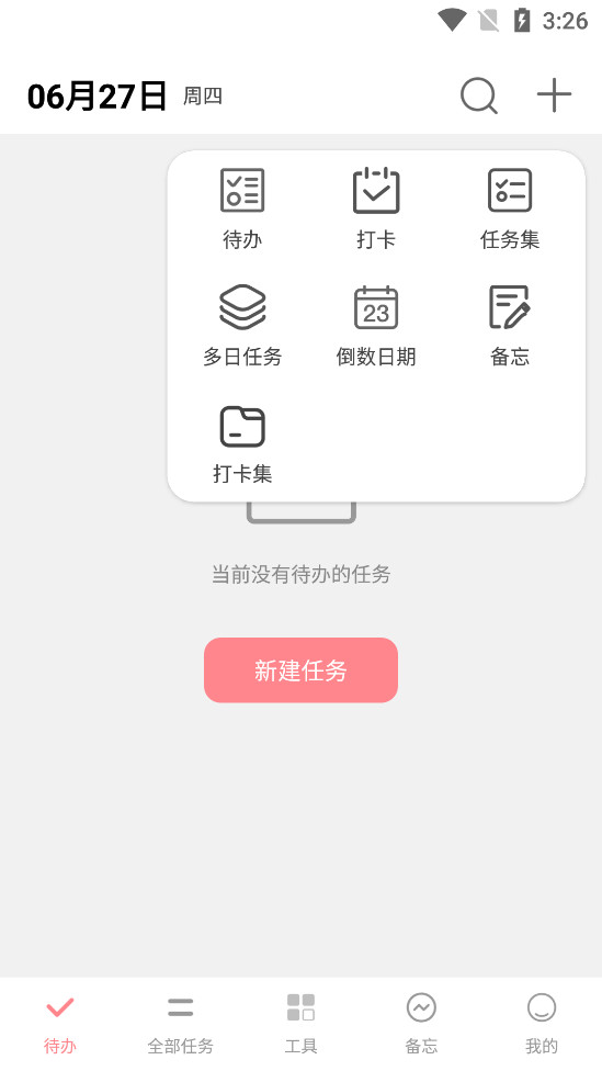 【打卡任务】用于安排一些每日重复的持续性任务,例如每日早起打卡,早睡打卡等。