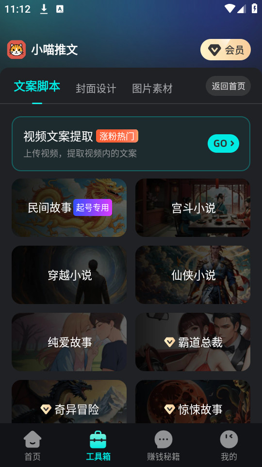 2、多样化选择:软件支持多种文案类型的生成,包括小说、漫画、短剧等,满足不同用户的需求和喜好。