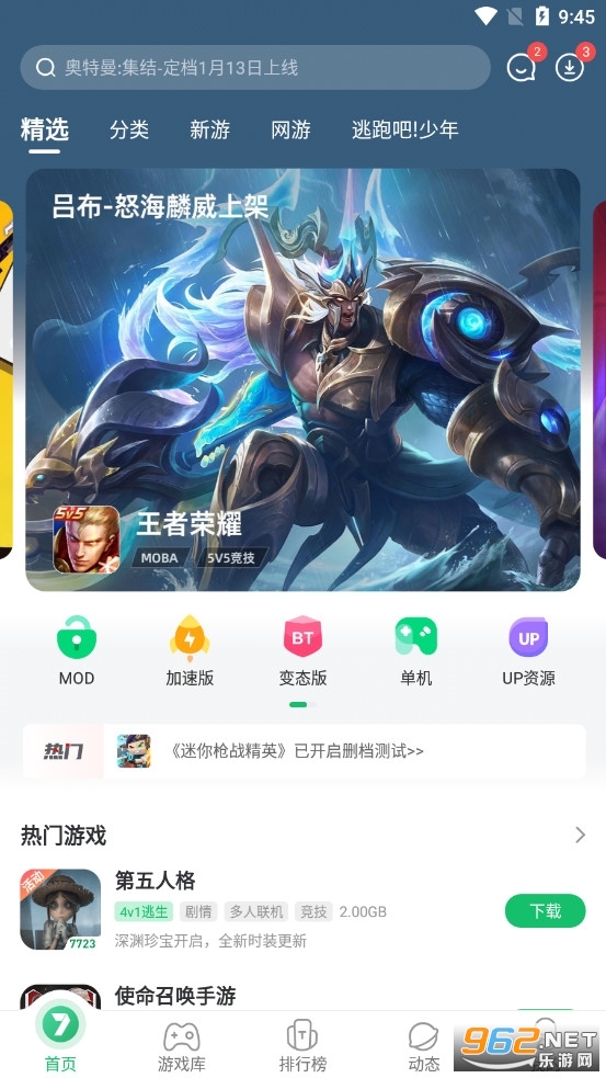 全新界面:全新设计,产品分类更清晰,游戏下载更顺畅