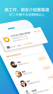 脉脉,职场人追捧的商务社交神器!相比于线下耗时耗力的商务社交,脉脉借助独有的“职业认证+实名社交”,帮助职场人更方便高效地在线上拓展人脉、交流合作、求职招聘,能极大地提升工作效率和增加职业机遇。职场人都在用脉脉,你还不来?