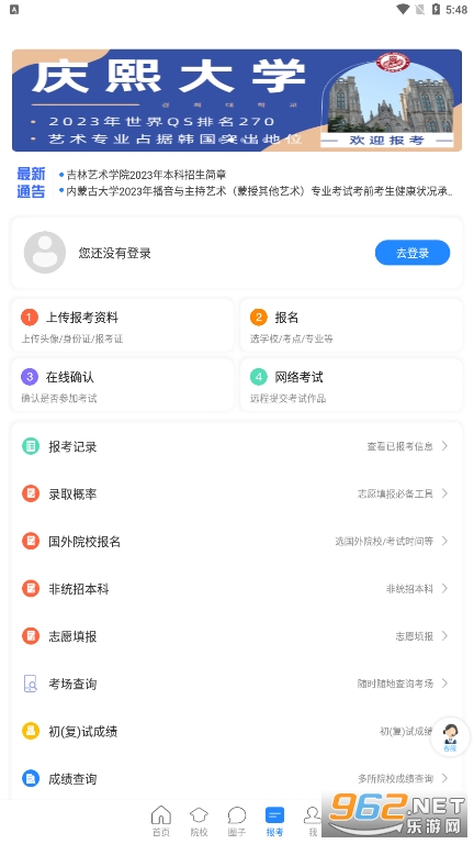 1、用户进入到艺术升首页之后,需要先登录账号然后选择菜单列表里的“报名”选项。