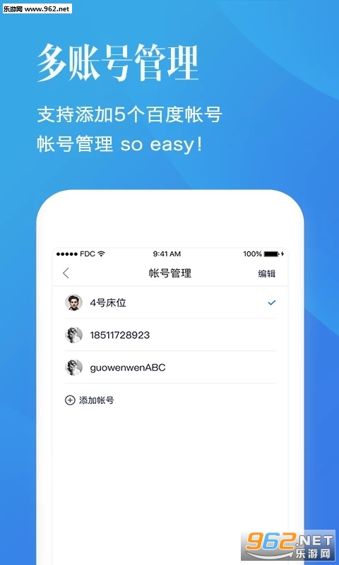多帐号管理:管理多达5个帐号,自由切换,管理方便;