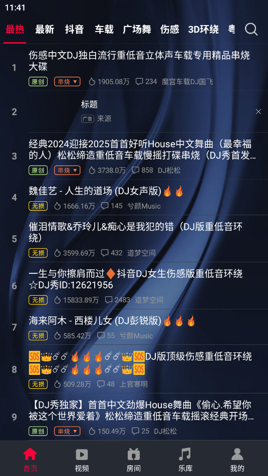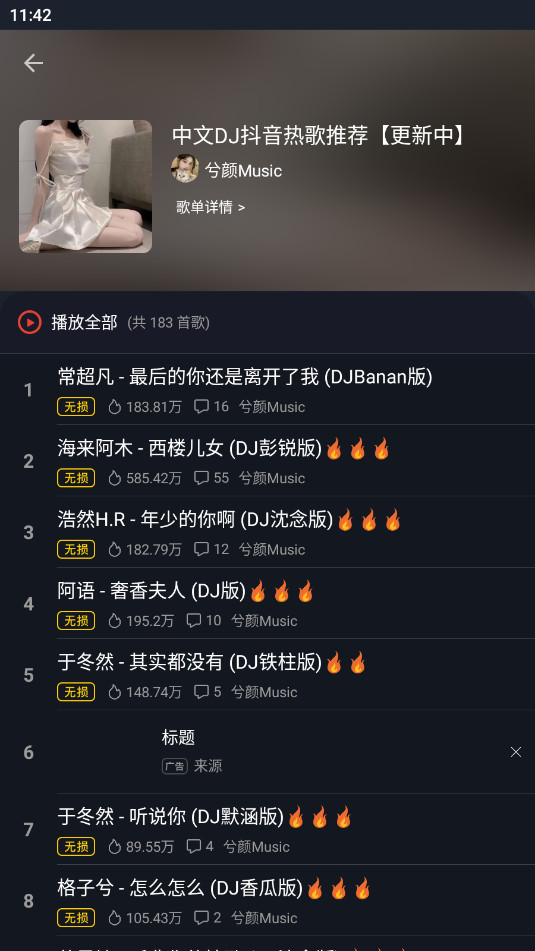 精彩歌单:从中文舞曲到英文舞曲,从日韩舞曲到夜店热曲,DJ秀的歌单精彩纷呈,满足你不同场合的听歌需求。