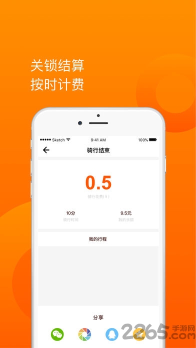 6.随时随地轻松还车,无固定车桩,停放在任意公共停车区域即可还车