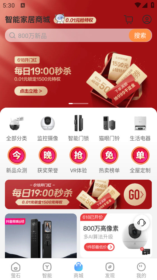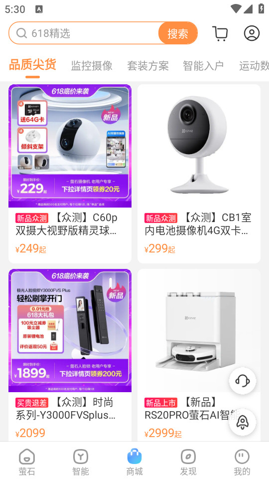 用户可以在线购买萤石所有的硬件产品与增值服务,电商定期会举办各种线上活动,优惠多多,等你来拿