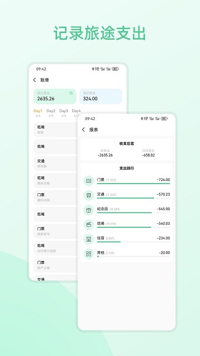 支持记录旅行账单,生成报表,让旅行花费一目了然。