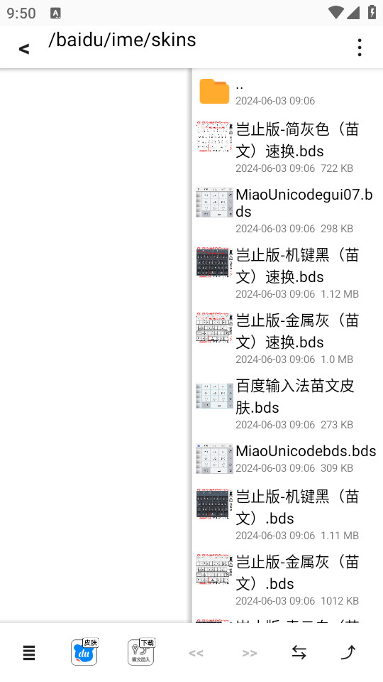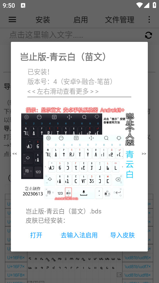 如果安装失败(也就是:百度输入法内找不到苗文皮肤),可以查看问题与帮助,或者 参考下面的安装方法: