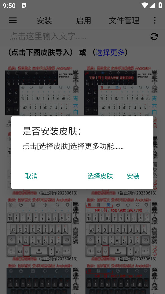 ②下载完成后安装并打开,通过软件安装皮肤到手机。(注意:打开应用时需授予应用存储权限,用于安装皮肤文件。)