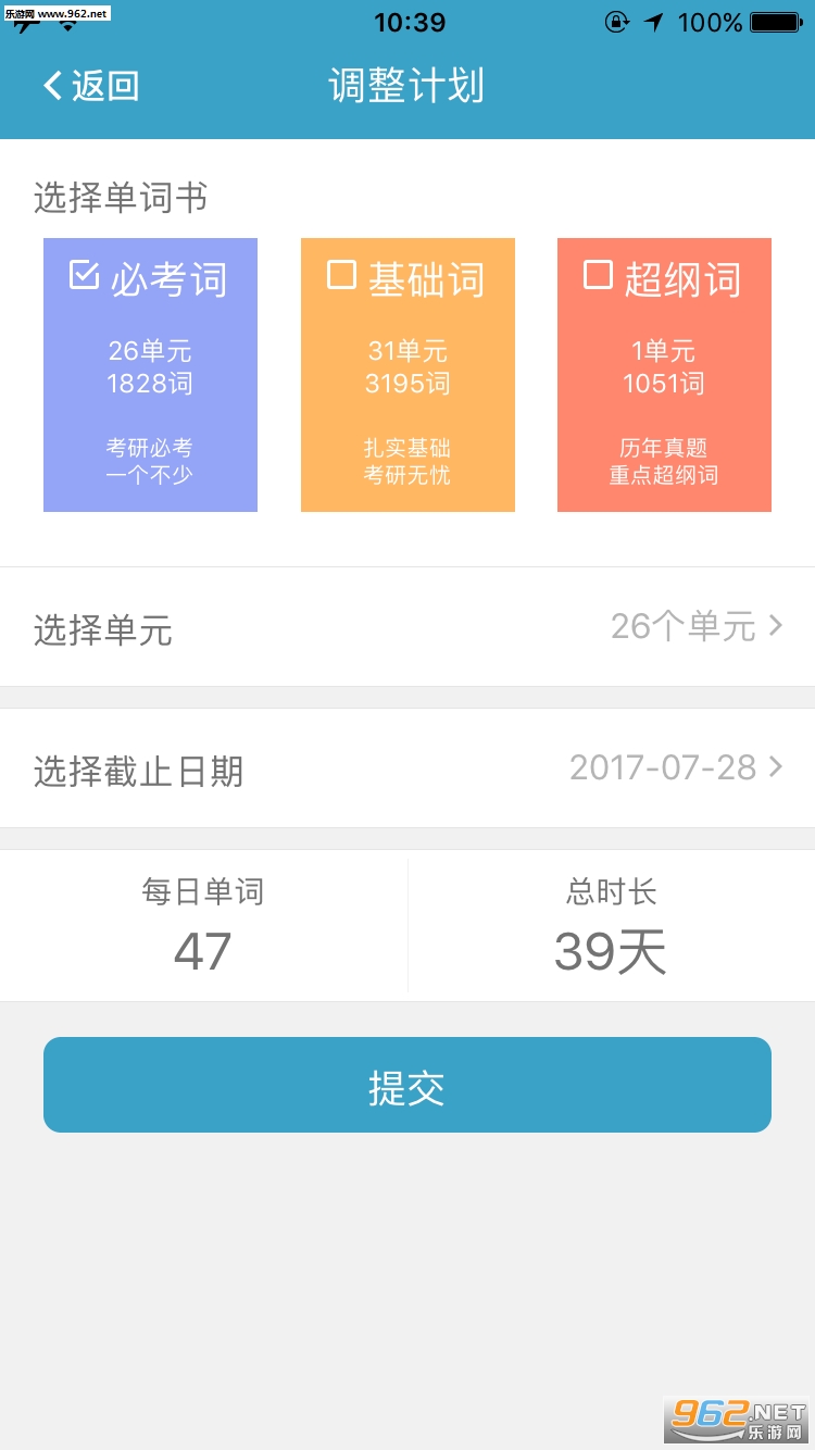 2.调整计划:用户可根据自身情况,对《【红宝书】考研英语词汇》必考词(26个单元)、基础词(30个单元)、超纲词(A-D)灵活制定学习计划。
