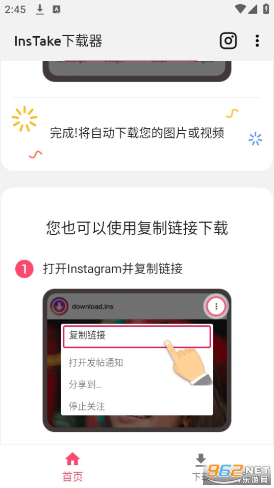 《instake下载器》是一款非常实用的图片和视频下载工具,专门设计用于帮助用户快速下载Instagram上的图片和视频。具有多种强大的功能,使得用户能够轻松愉快地下载和保存他们在Instagram上看到的内容。支持免费下载Instagram上的高清视频和图片,而且无需用户登录。具有后台下载功能,即使在应用被切换到后台的情况下,下载也不会中断。