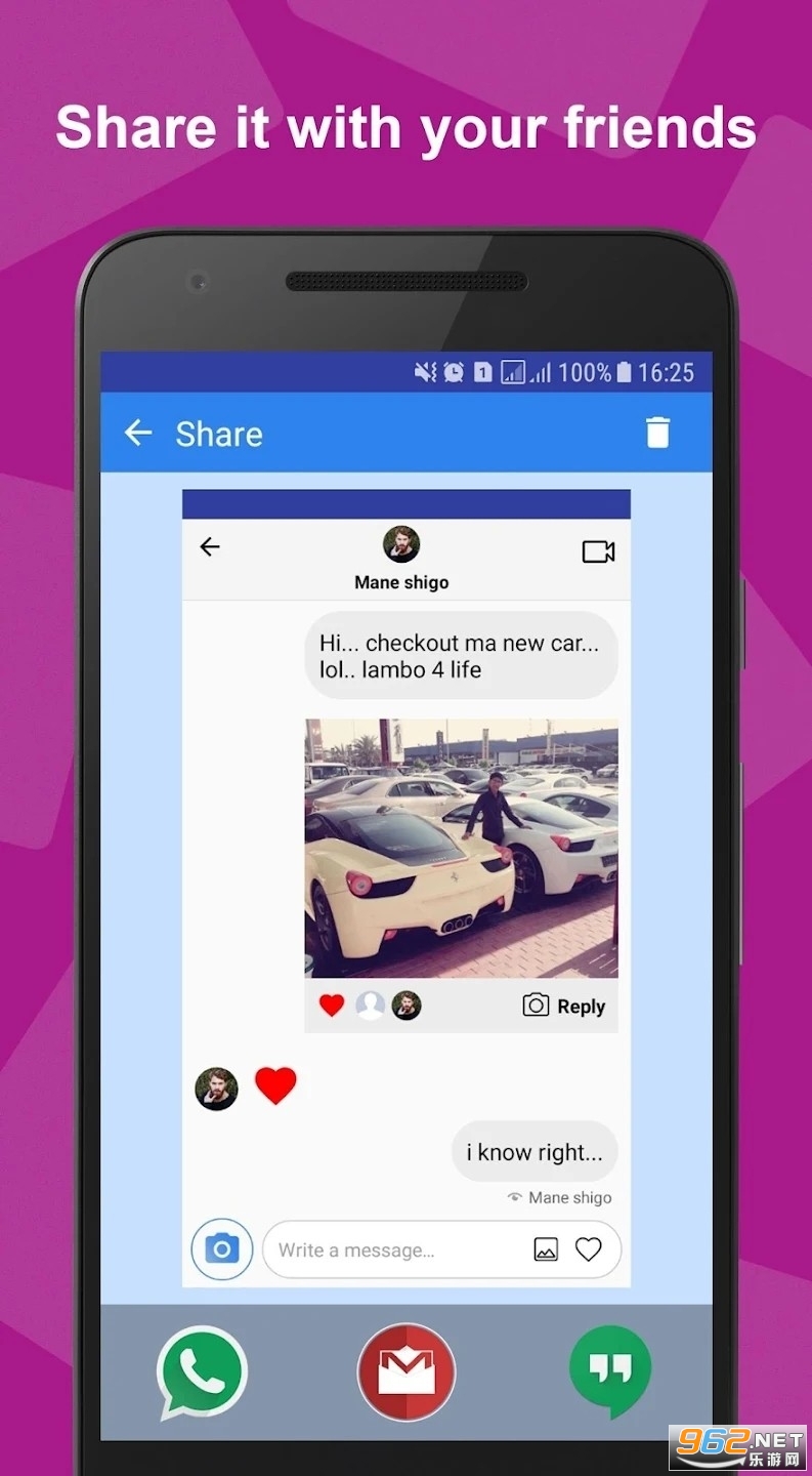 功能强大的一款虚拟社交类的手机软件,可以设计和偶像的虚假对话,尽情的和你的朋友进行分享。用起来很方便,还能够生成自动假回复。感兴趣的话可以下载体验一下!