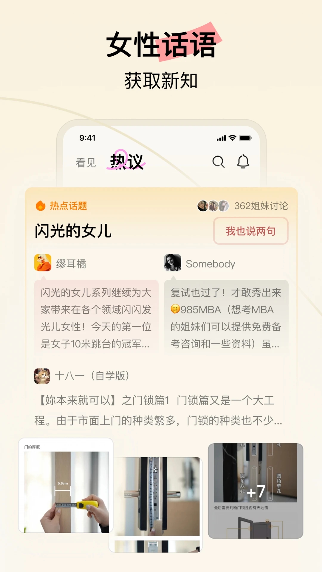 《荷塘Hertown》是一个专为女性打造的真实生活分享社区,旨在为女性提供一个安全、舒适、专注的交流平台。在这里,每一位女性都可以放心地谈论自己的真实经历,提出心中的疑惑,表达独特的观点,与志同道合的姐妹们展开深入的讨论。Hertown倡导真实、鲜活的女性形象,鼓励姐妹们勇敢发声,展现自我,共同营造一个充满爱与关怀的女性社区。