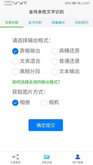 1、智能识别各种证件等功能