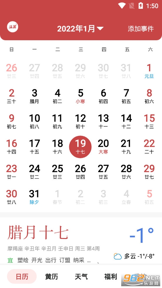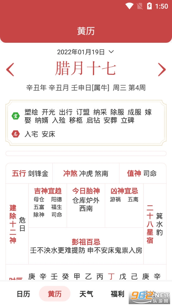 中华万年历老黄历一历在手,万历皆有。黄历宜忌、节日节气、吉日查询、天气预报于一身的日历软件。